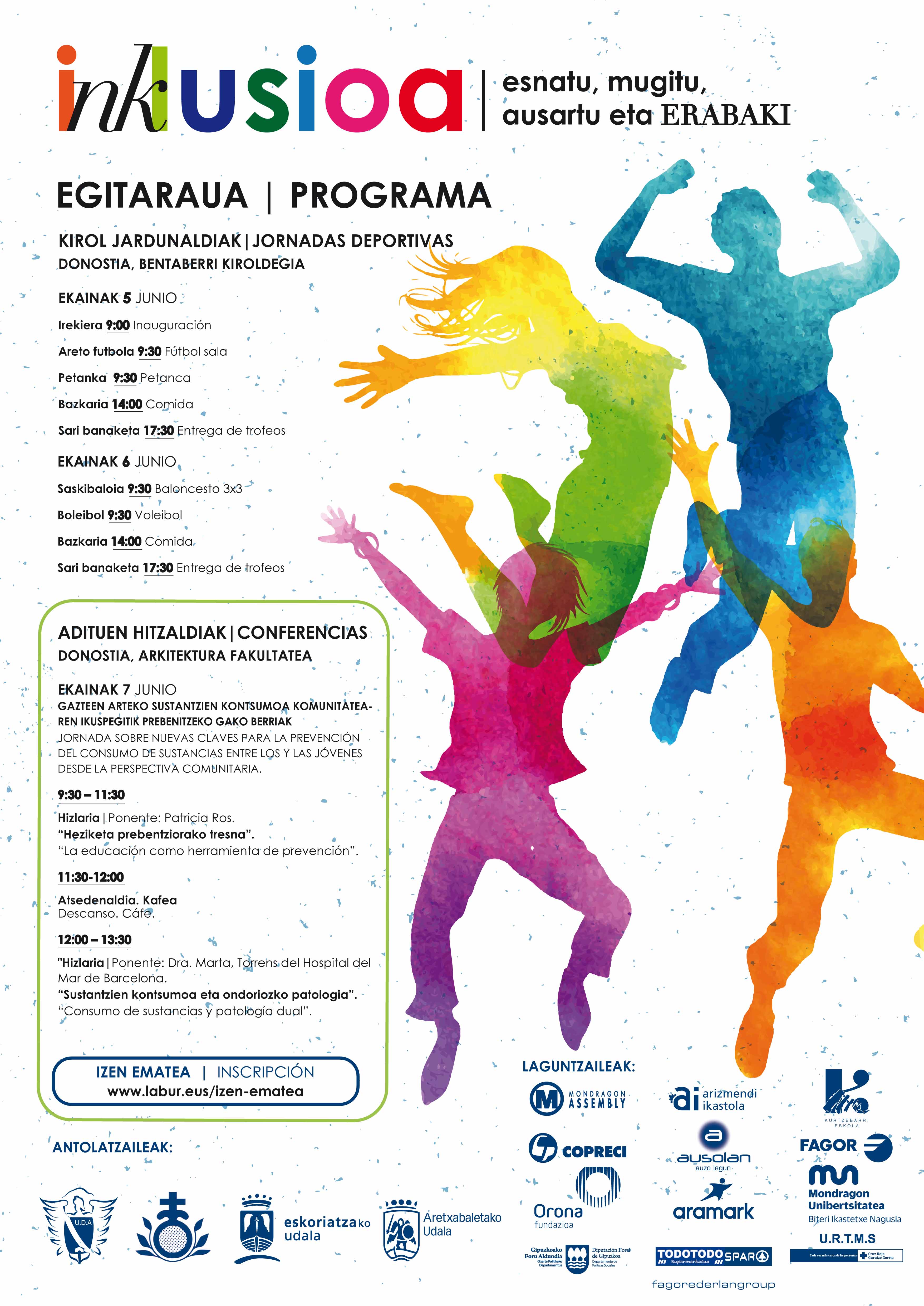 Tomarán parte los alumnos y las alumnas de 4º curso de la ESO de los centros Kurtzebarri y Arizmendi, junto con los pacientes y las pacientes del Hospital San Juan de Dios. El día 5, competirán en petanca y futbol sala, y el día 6 voleibol y baloncesto 3X3. Los equipos serán mixtos. Además, entre los partidos, también cada equipo participará en un grupo de discusión con el objetivo de reflexionar sobre las consecuencias que lleva consigo el consumo de drogas.