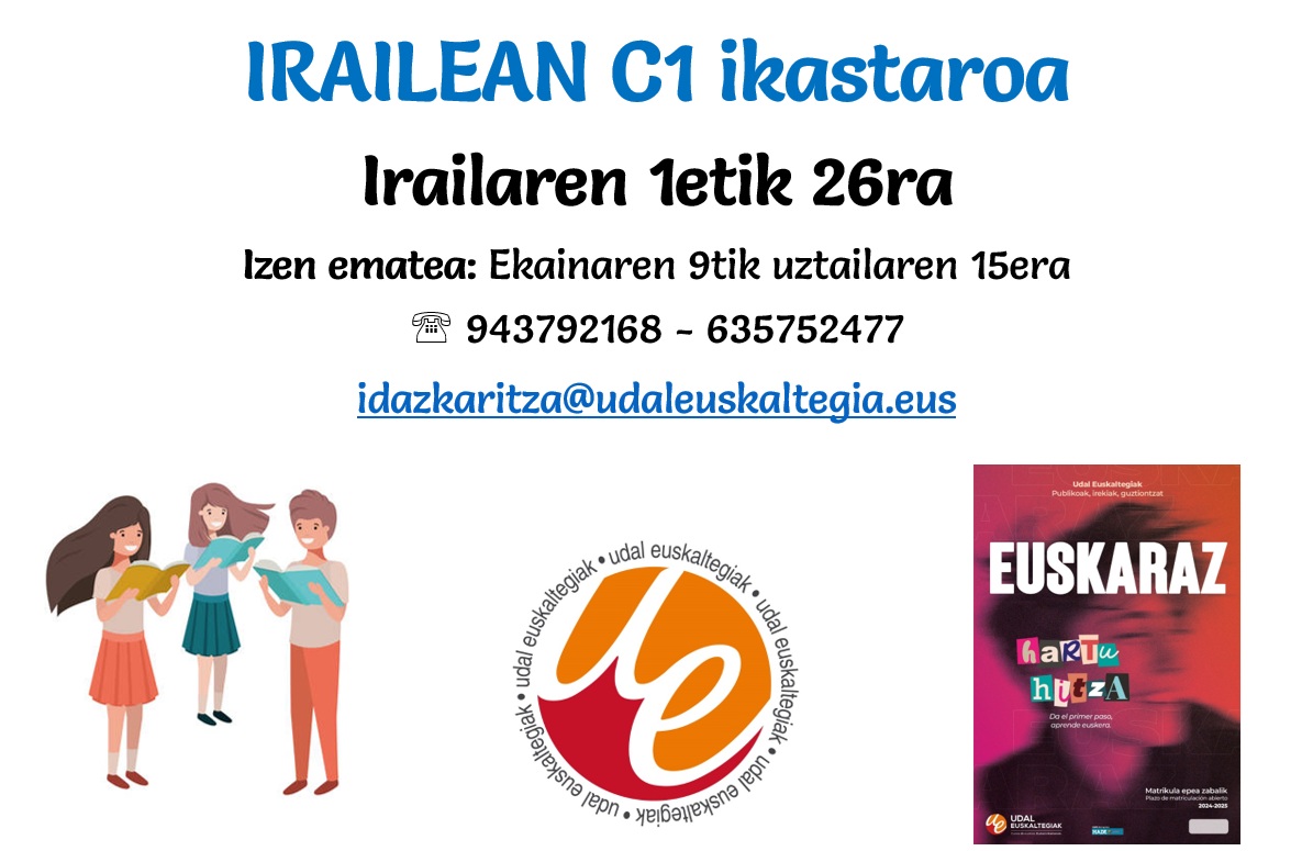 Leintz Udal Euskaltegia ofrecerá en septiembre un curso intensivo de preparación para el examen de euskera que hasta ahora se conocía como EGA y que se equipara al nivel C1 del Marco de Referencia Europeo Estándar.