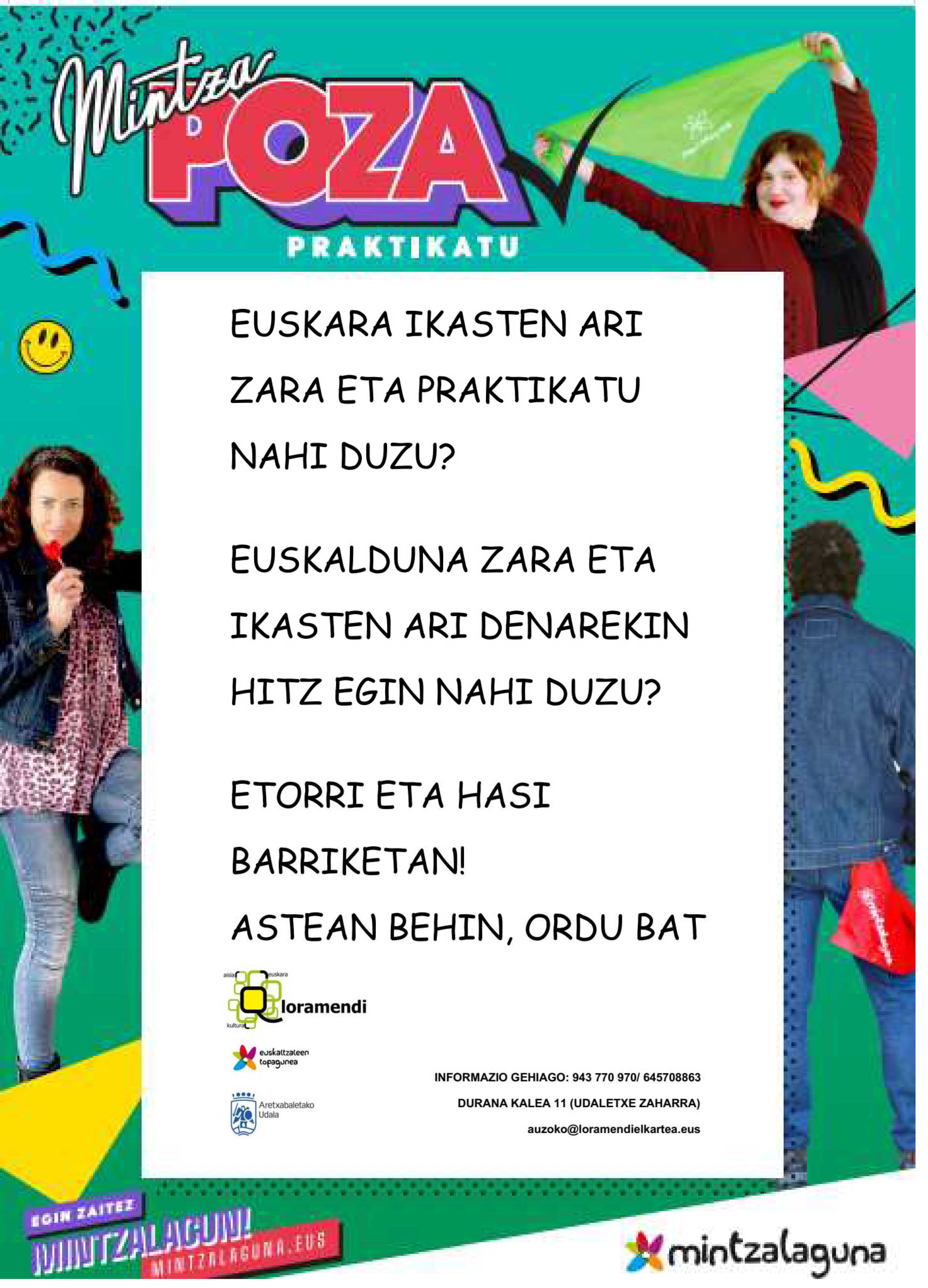 Los grupos se forman en función de las posibilidades de las y los participantes. Las personas interesadas en uno de estos programas pueden llamar al 943 770 970/ 645 708 863, enviar un email a auzoko@loramendielkartea.eus, o dirigirse a la oficina de Loramendi Euskara Elkartea (calle Durana, 11).