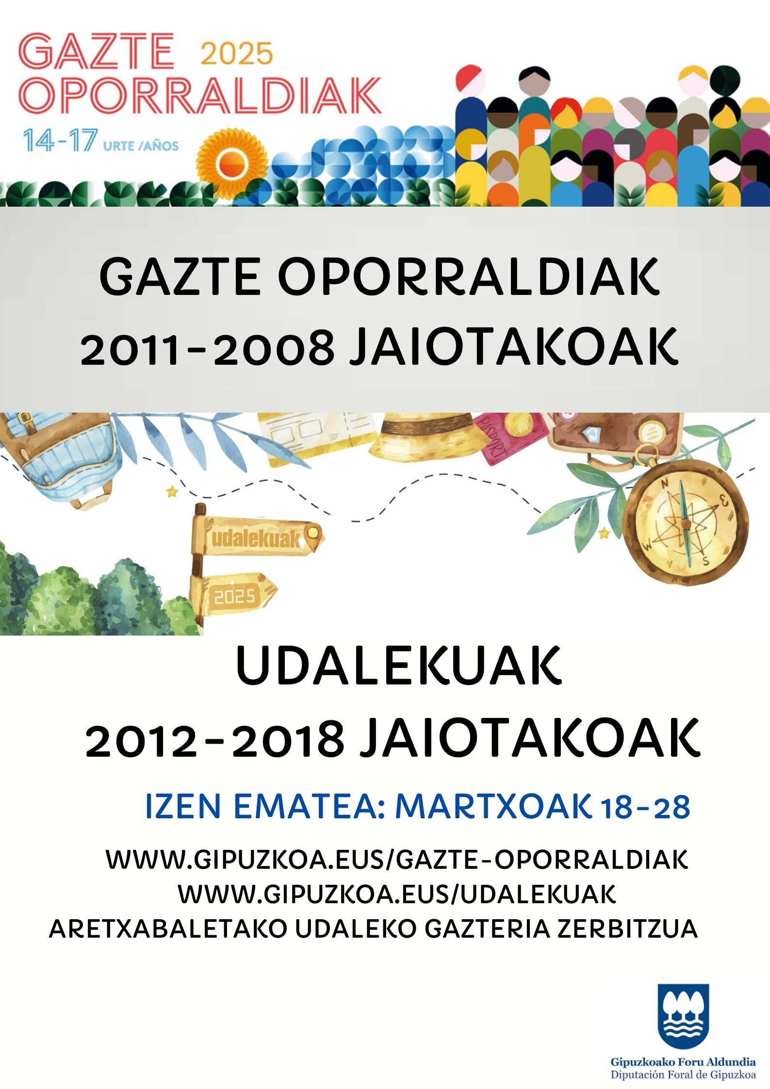 Como todos los años, las diputaciones de Gipuzkoa, Bizkaia y Araba han organizado las campañas “Udalekuak” para niños y niñas de entre 7 y 13 años, lo (nacidos y nacidas entre 2012-2018). Se desarrollarán en Zuhatza, Irisarriland, Abaraska, Gorliz, Zarautz, Orio, Lekeitio, Meakaur…y Gazte oporraldiak
