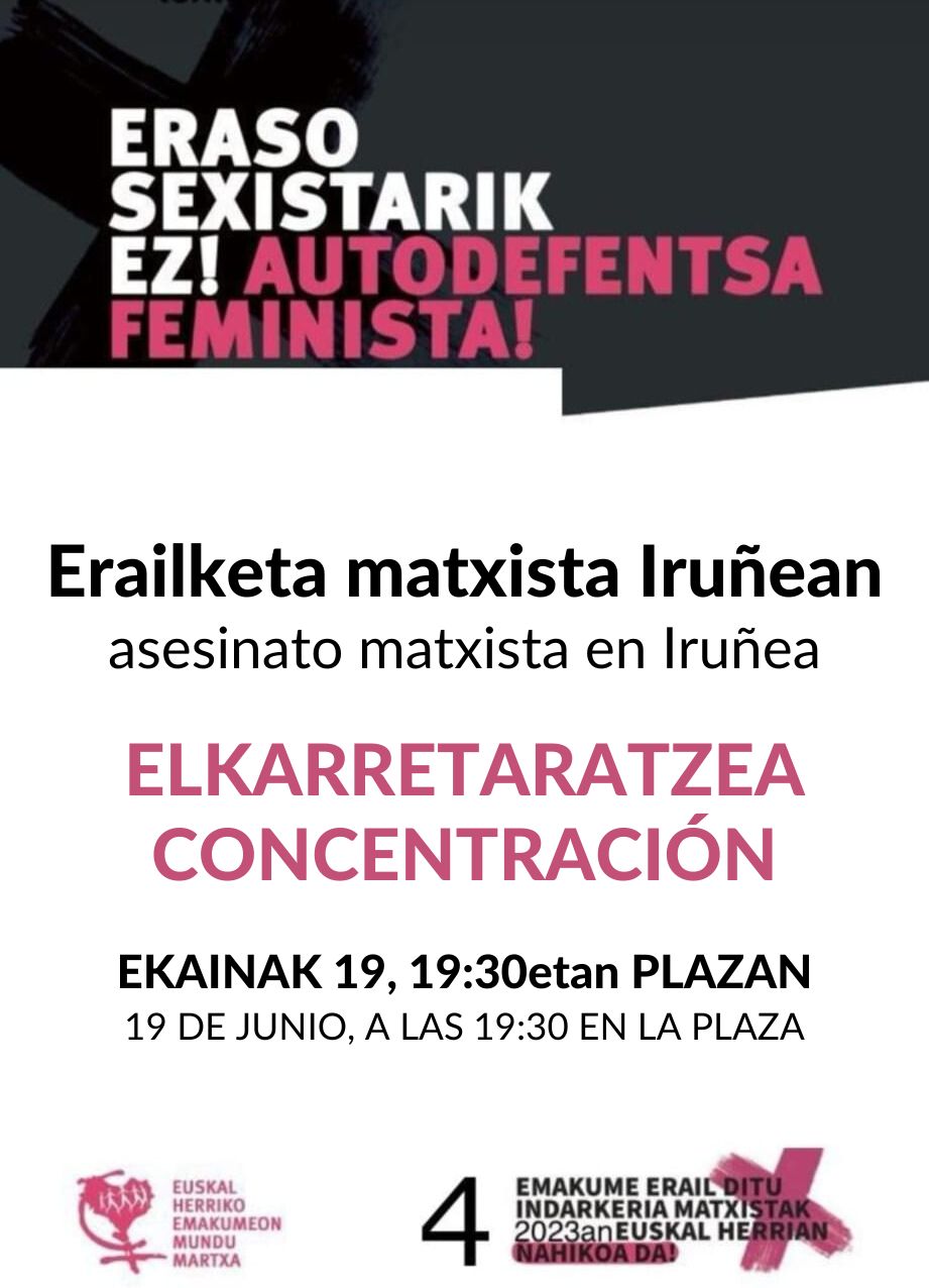 El Ayuntamiento de Aretxabaleta condena el asesinato machista de una mujer de 47 años en Iruña este 1 de julio, y muestra su apoyo y cercanía a sus familiares y allegados.