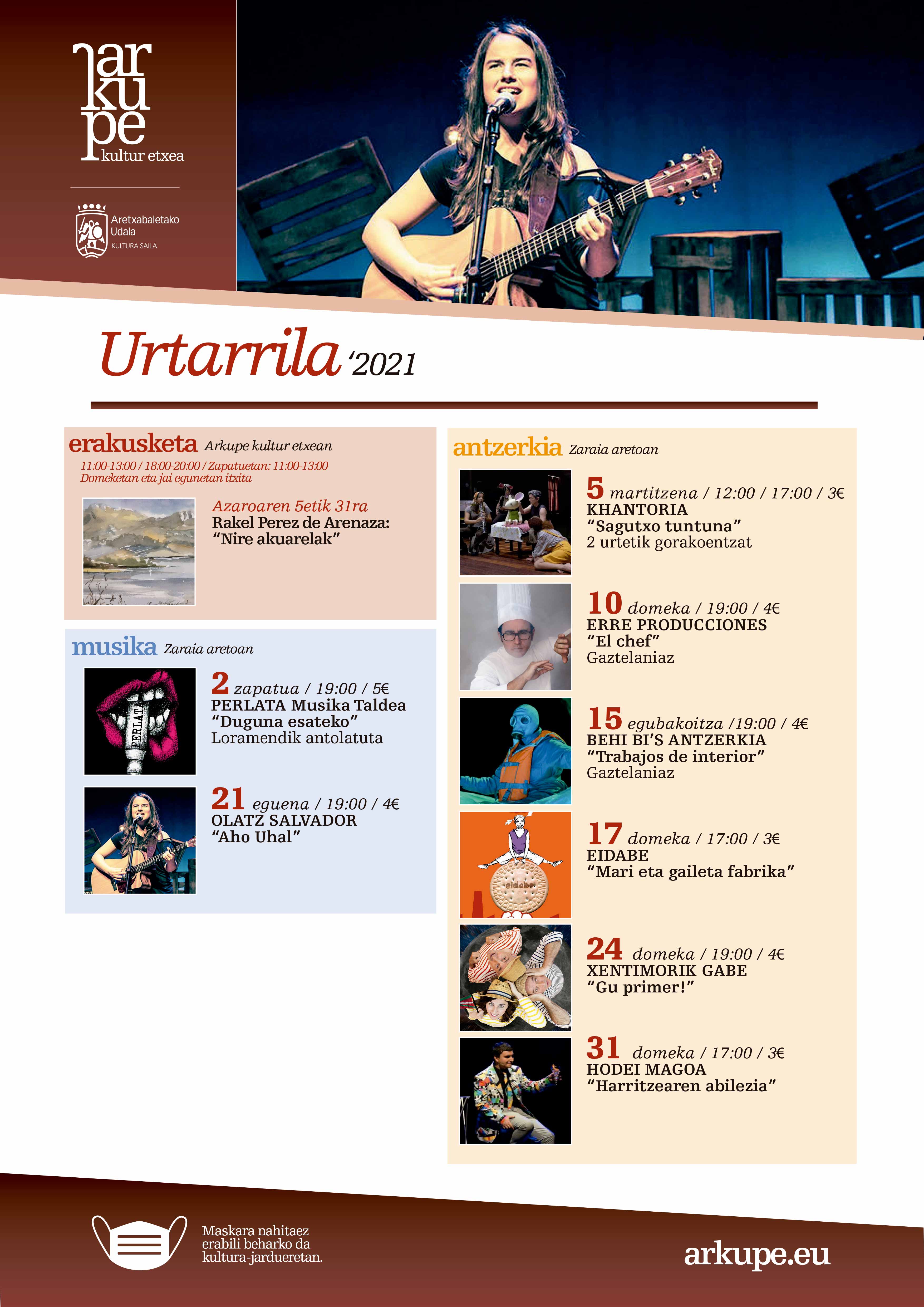 El teatro encabeza la programación cultural que inaugurará el 2021 en Arkupe. Seis espectáculos, dirigidos a todos los públicos, dan contenido a la cartelera del mes de enero, que también reserva espacio a la música y la pintura.