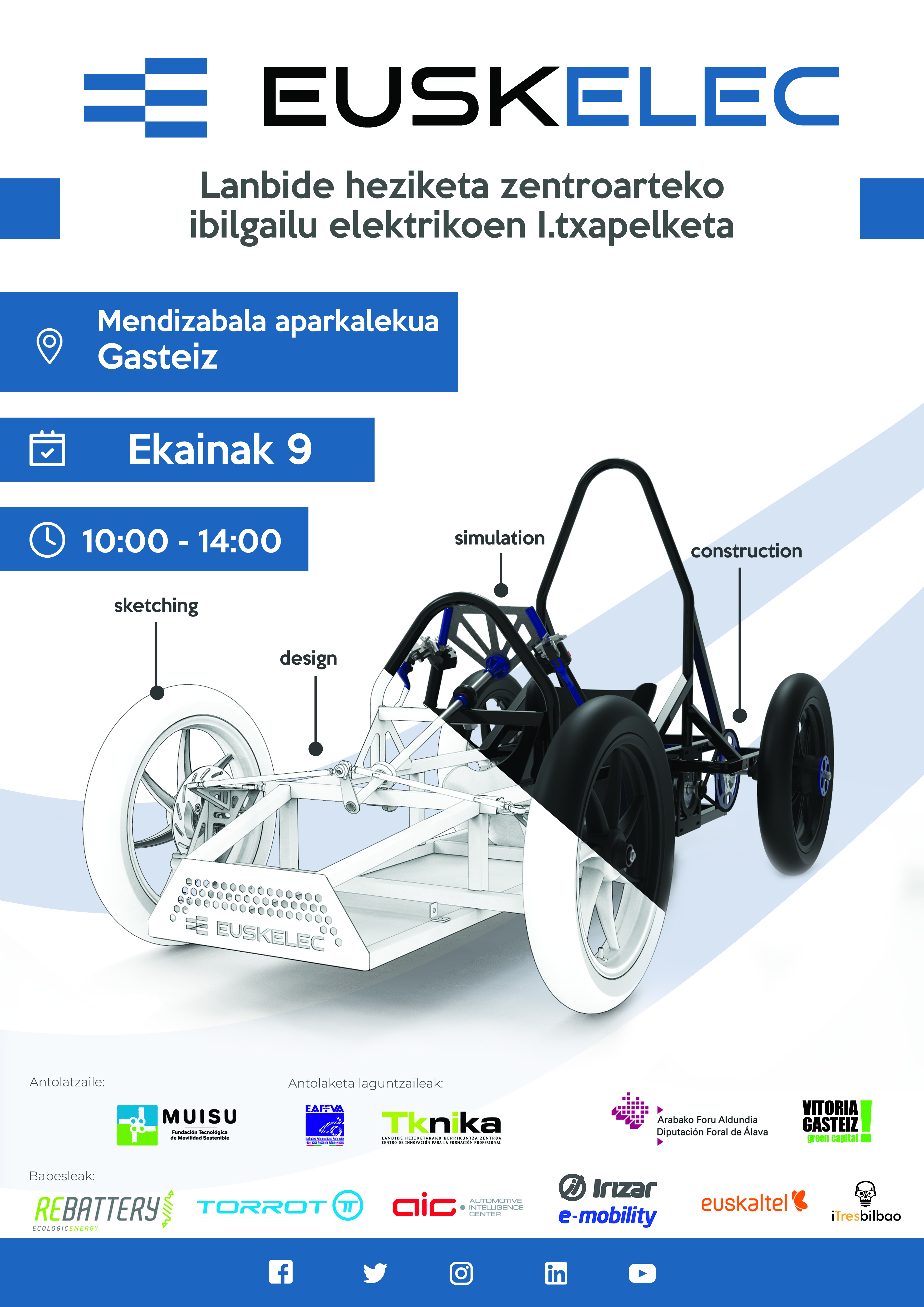 Para este concurso cada centro construirá un vehículo eléctrico y serán las prestaciones del vehículo, las características y el diseño las que competirán. En el caso del vehículo que será presentado por el Instituto Aretxabaleta los alumnos han participado en la creación del diseño del chasis y la fabricación del mismo.