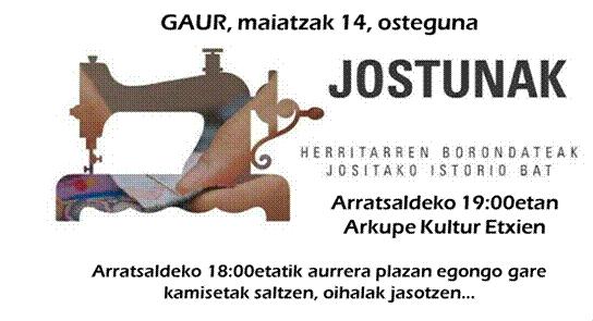 Eta horretaz gain... arratsaldeko 19:00etan JOSTUNAK dokumentala ikusteko aukera egongo da Arkupe Kultur Etxean. Hemen duzue dokumentalaren trailerra.