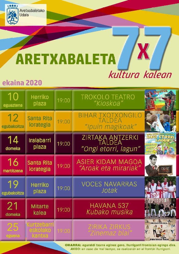 La actividad cultural regresa a Aretxabaleta con el programa ‘7x7 Kultura kalean’