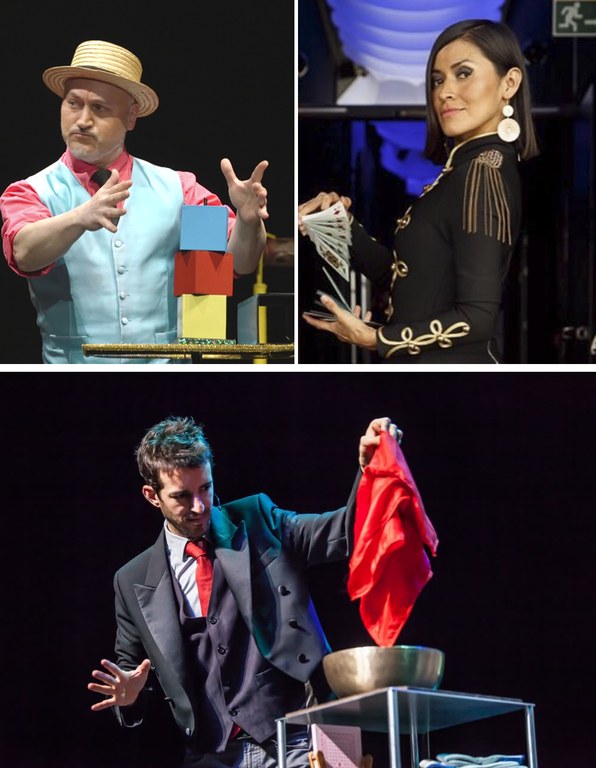Los trucos de estos tres ilusionistas llegarán primero a la residencia de personas mayores GSR, en una sesión que tendrá lugar el día 14 a partir de las 17.00 horas. Después, desde las 19.00, actuarán por las calles. En la jornada del 15, la maga peruana afincada en Barcelona, Gisell, ofrecerá un espectáculo sobre las tablas de Zaraia aretoa, en Arkupe (18.30 horas; tres euros). En el mismo escenario, el día 16 el gasteiztarra Asier Kidam impartirá dos talleres para niños y niñas de entre siete a diez años, a partir de las 15.00 horas, y para mayores de esa edad (16.15 horas). A continuación, Kidam actuará  para el público en general (19.00 horas; tres euros).