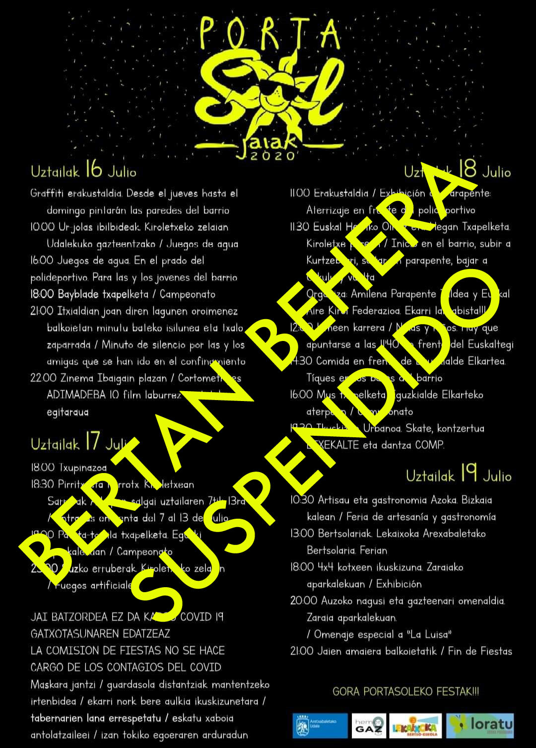 Sin embargo, viendo la tendencia que en la última semana está teniendo el coronavirus, con nuevos brotes de contagios, el Consistorio ha decido cancelar las fiestas. “Nos toca a todos y todas actuar con responsabilidad y prudencia para frenar esta pandemia, y evitar las situaciones que puedan provocar nuevos brotes”, manifiesta el Ayuntamiento, que también agradece a la comisión de festejos de Portasol “su trabajo y su absoluta predisposición a colaborar”. “El año que viene celebraremos todas y todos juntos las fiestas”, sentencia el Consistorio.