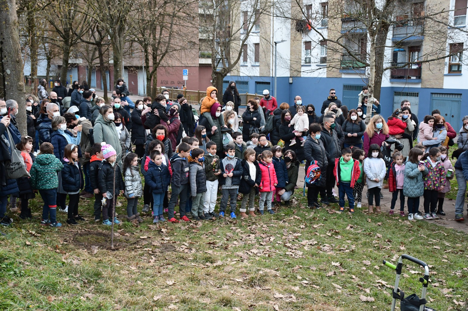 omo símbolo de la vida y la muerte, el viernes se plantaron los árboles que los payasos Porrotx y Marimotots regalaron a los niños y las niñas de Aretxabaleta. La plantación tuvo lugar en la zona verde de la antigua plataforma del tren. En el acto, dos dantzaris de la musika eskola bailaron un agurra y también se cantó el bertso escrito por miembros de Lekaixoka Bertso Eskola.