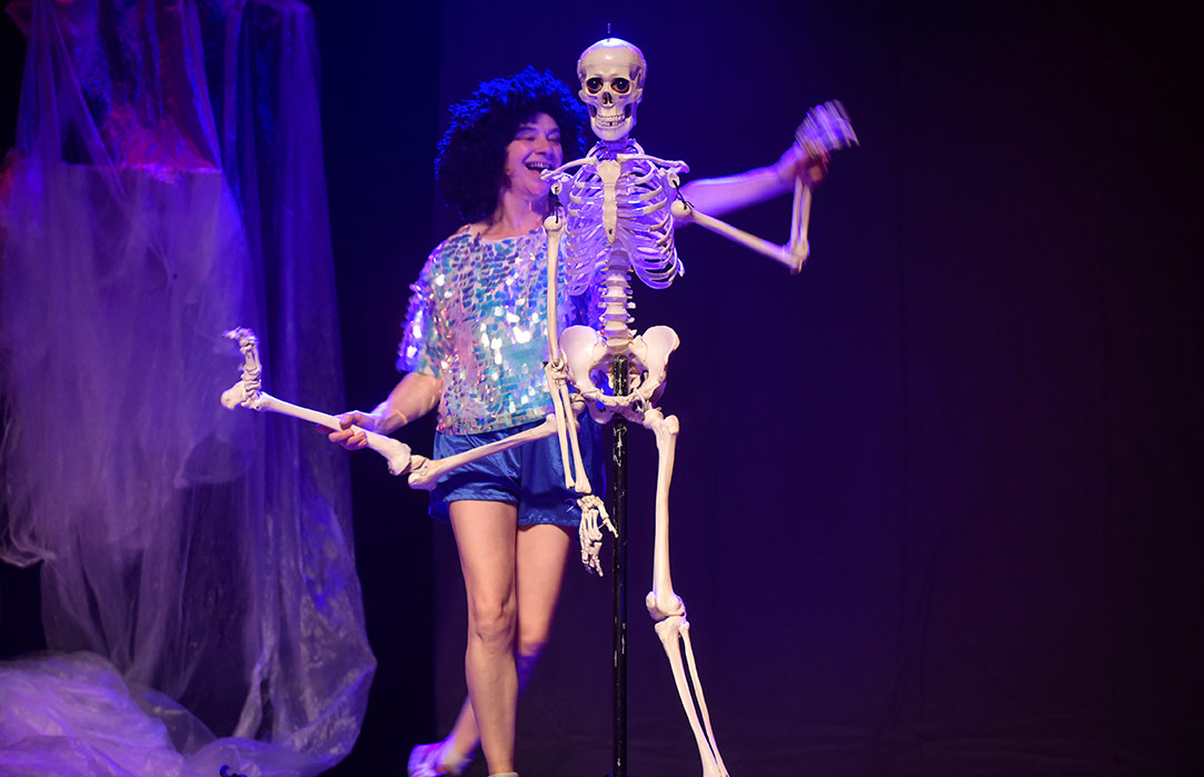 Se pone manos a la obra: hace instalaciones artísticas con cañas y plásticos; en un alarde surrealista mantiene conversaciones con su esqueleto; intenta llevar acorde su estado de ánimo con su imagen exterior; se pone feliz, funky, conspiranoica, patafísica…