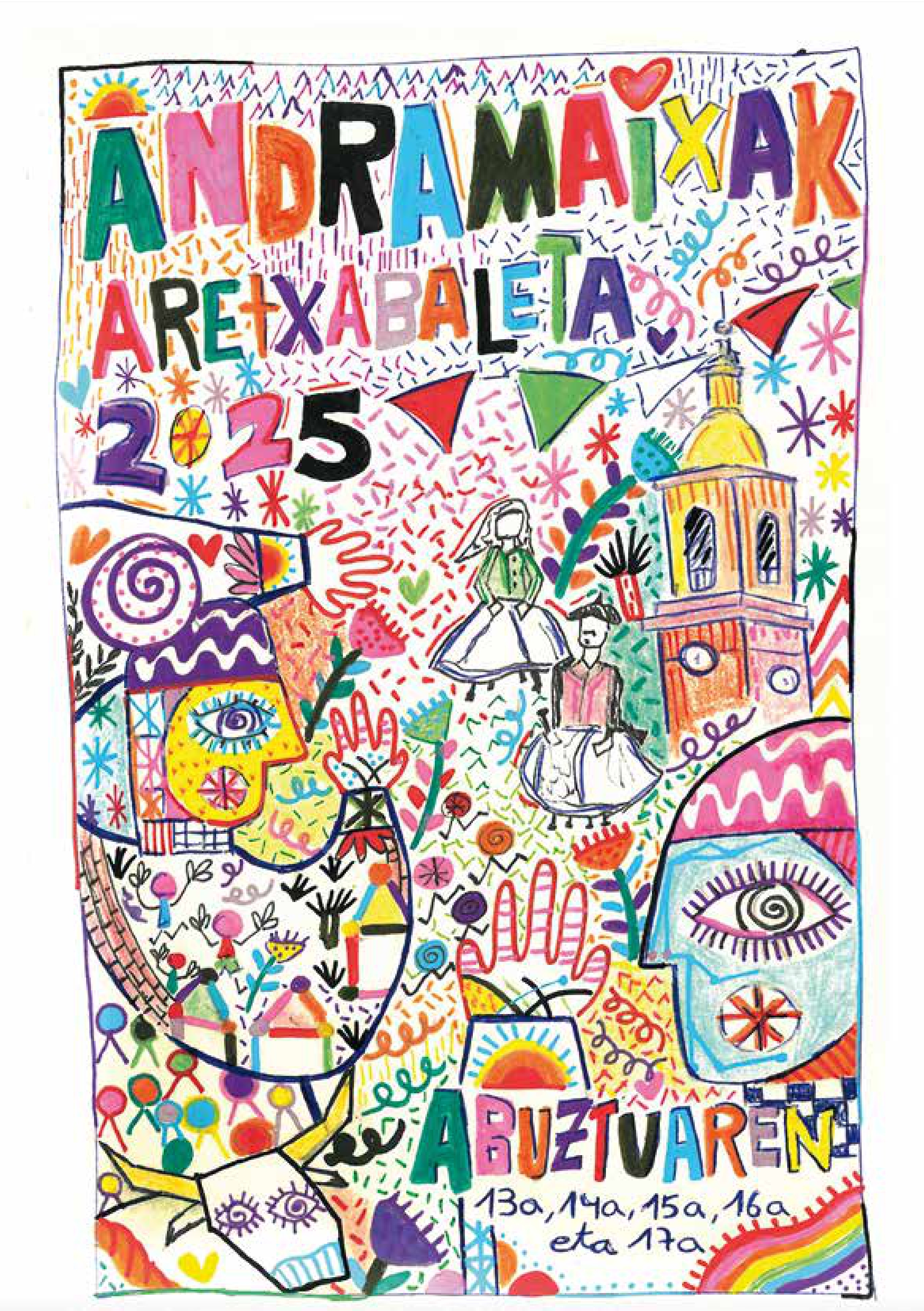 Abuztuaren 13tik 17ra bitartean, Aretxabaletak Andramari jaiak ospatuko ditu. Ikusi hemen Izaro Sanchezen irudi koloretsuek girotzen duten Andramaixetako egitarau osoa. Aurten, DebaTEA Elkarteak emango die ongietorria jaiei, inklusioa eta aniztasuna ardatz hartuta.