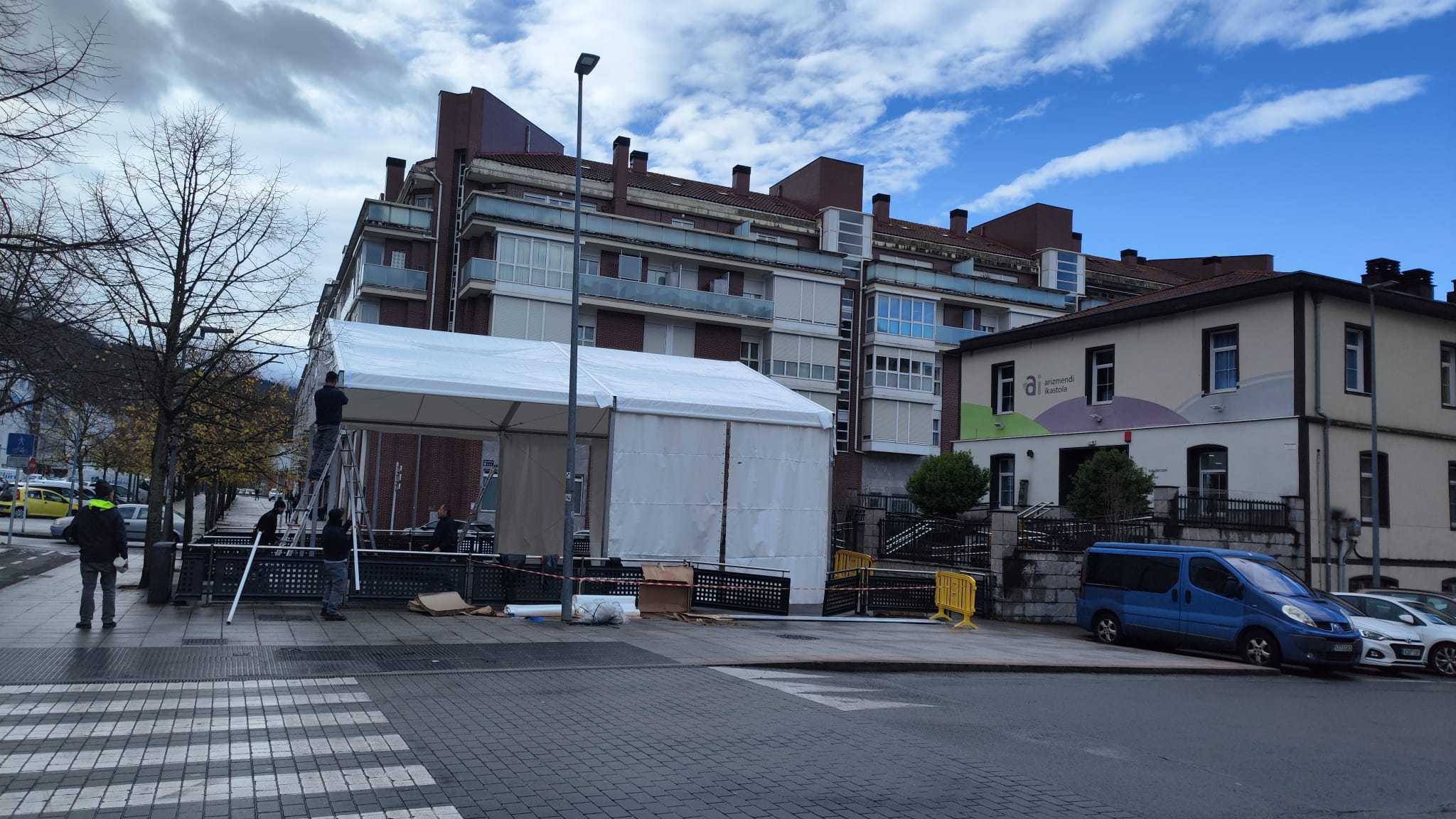 Aste honetan behin-behineko karpa bat jarri da Basabeazpiko patioan. Karpa hori bertan egongo da plaza eta estalki berriaren proiektua amaitu eta gauzatu arte. Proiektu horren helburua da ikastolako patioa handitzea eta estalki bat jartzea, ikasleek jolastokiko orduetan aterpe izan dezaten, eta herritar guztiek ere erabili ahal izan dezaten gainerako orduetan.