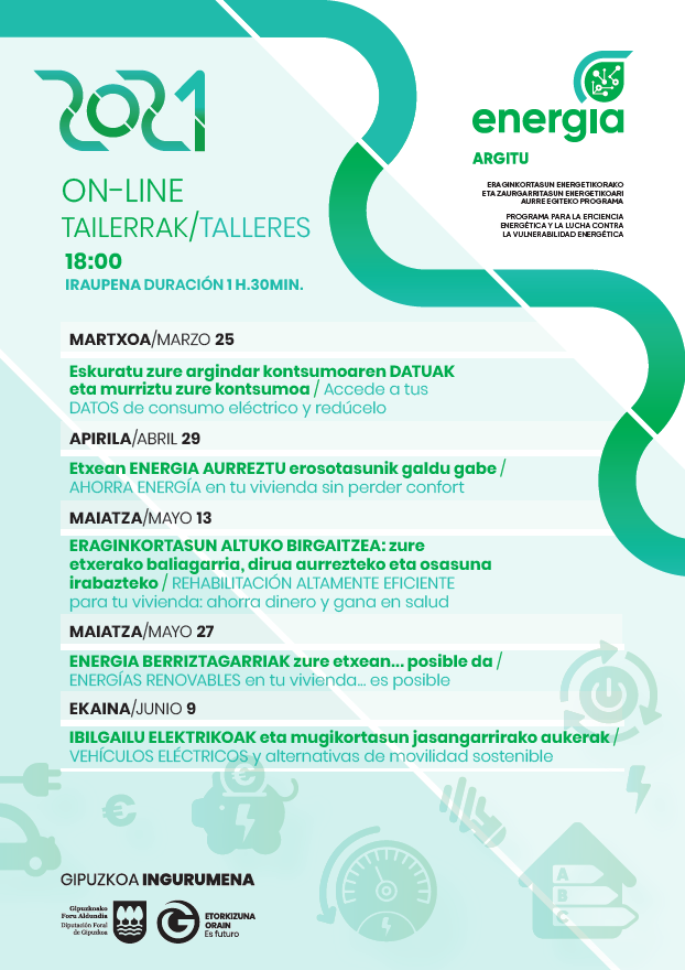 - ENERGIA ARGITU 2021 Herritarrentzako tailerrak, ON-LINE: