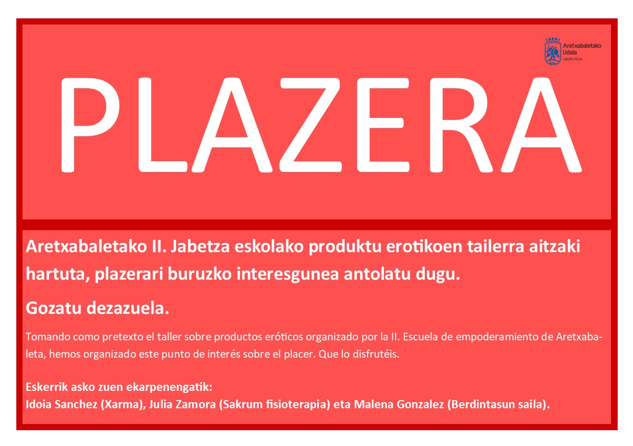 Aretxabaletako II.Jabetza eskolak antolatu duen produktu erotikoen tailerraren arira Udal liburutegiak plazerari buruzko interesgunea antolatu du. Bertan, gaiarekin lotura duten liburuak bildu eta herritarron eskura jarri ditu.