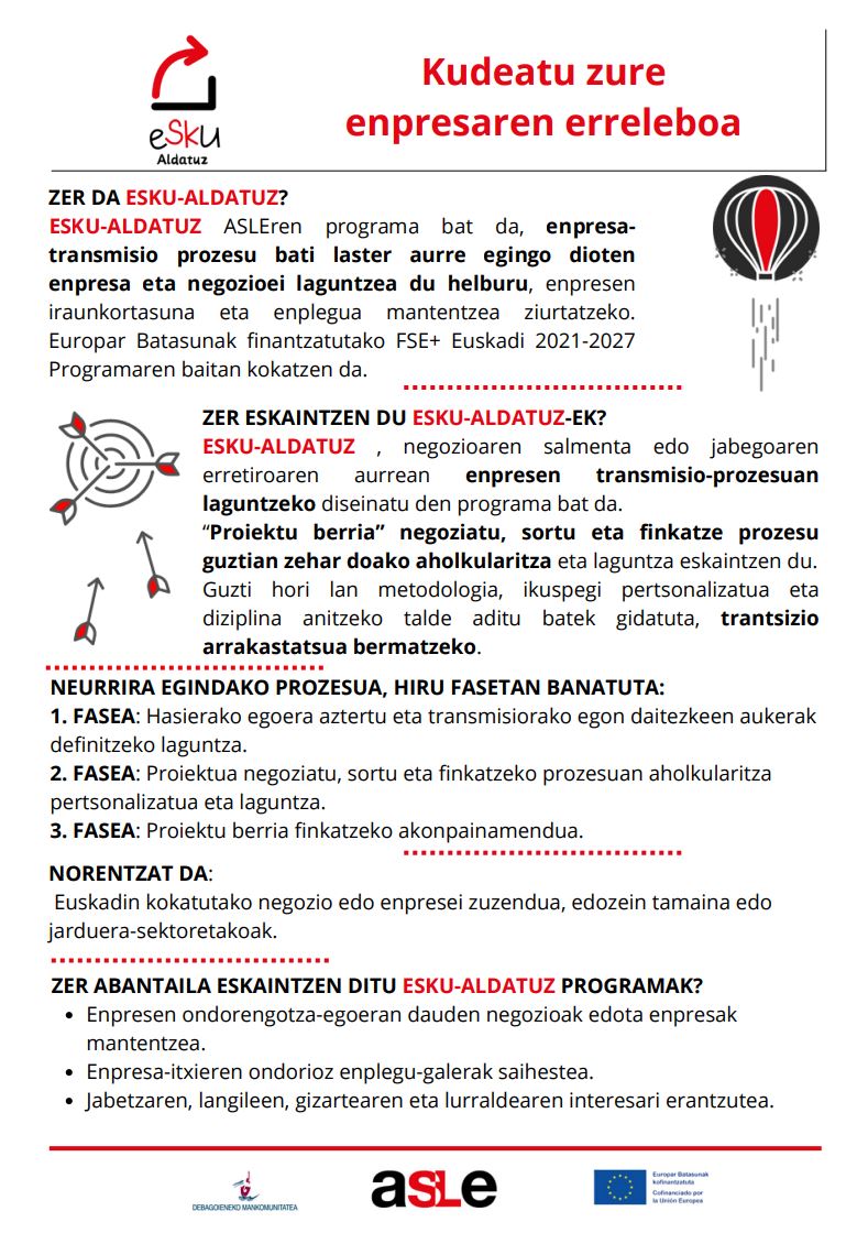 ESKU ALDATUZ , negozioaren salmenta edo jabegoaren erretiroaren aurrean enpresen transmisio-prozesuan laguntzeko diseinatu den programa bat da.