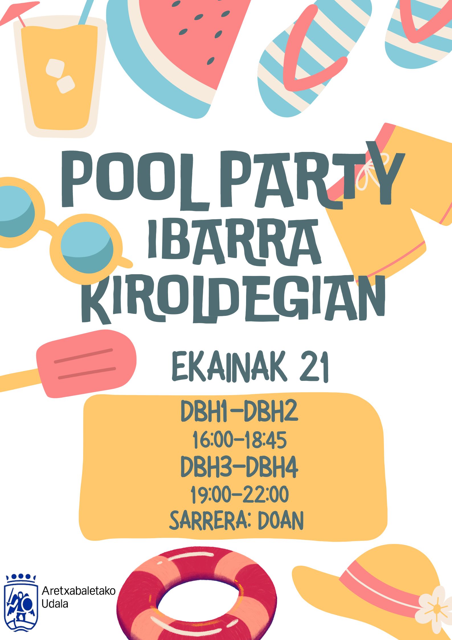 Nerabeei zuzendutako eskaintzaren barruan, eta ikasturteari bukaera emateko, ekainaren 21ean Ibarra kiroldegiko igerilekuetan Pool Party-a ospatuko da. Bertaratzen direnek puzgarriak eta musikarekin ondo pasatzeko aukera izango dute.