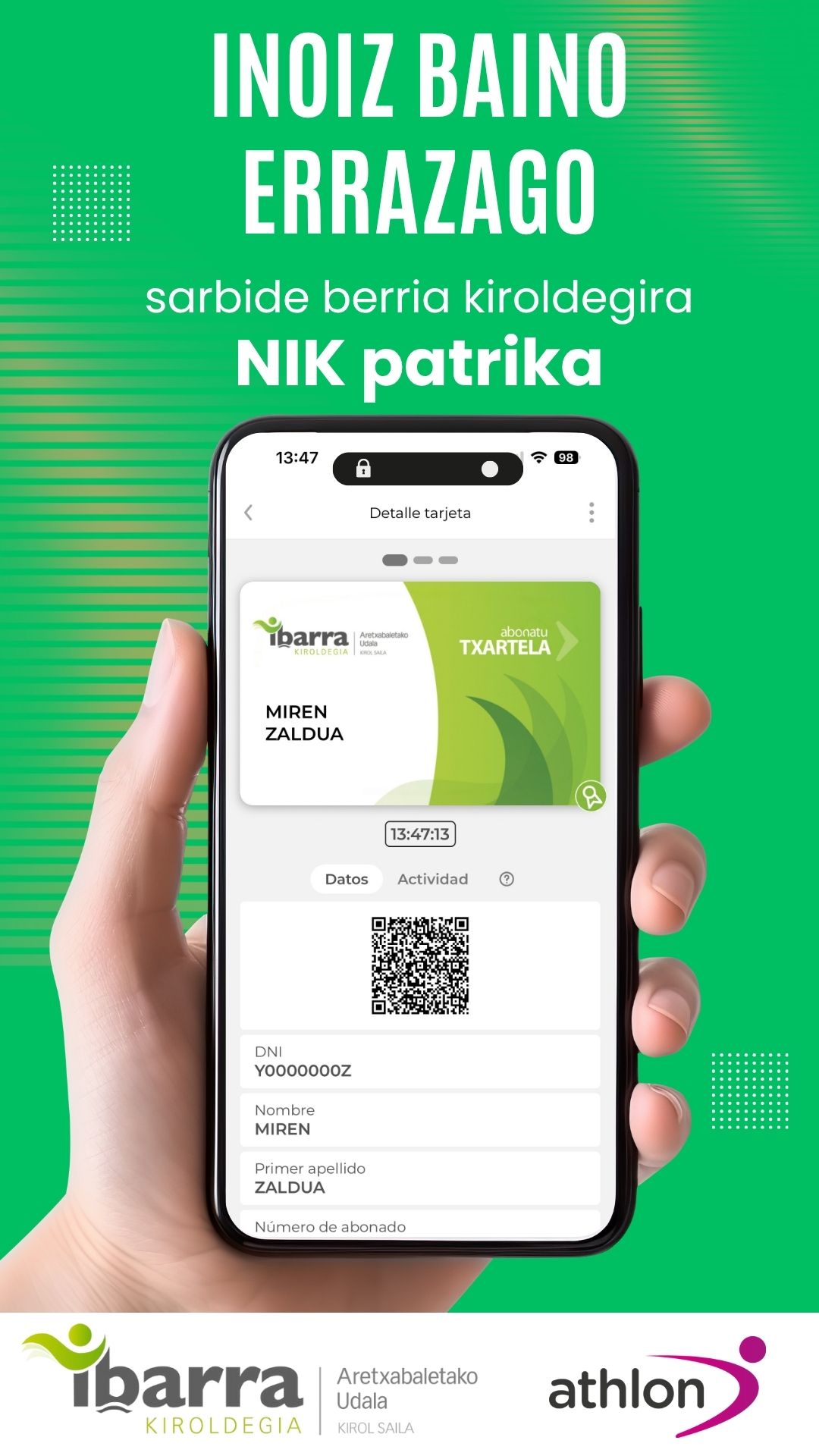 Herritarrek jada aukera dute NIK txartel digitala mugikorrean aktibatzeko, txartel fisikorik behar izan gabe. Honela, kiroldegiko sarrera modu eroso eta azkarrean erabili ahal izango dituzte, baita nobedadeen berri izan ere.