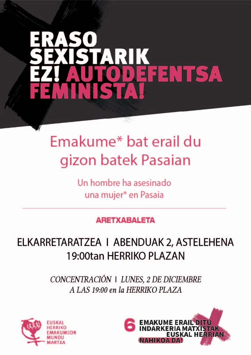 Hau ez da ekintza bakan bat, arazo estruktural bat delarik. Horregatik, Udalak adierazten du abenduaren 2an, astelehena, 19:00etan herriko plazan egingo den elkarretaratzean parte hartuko duela.