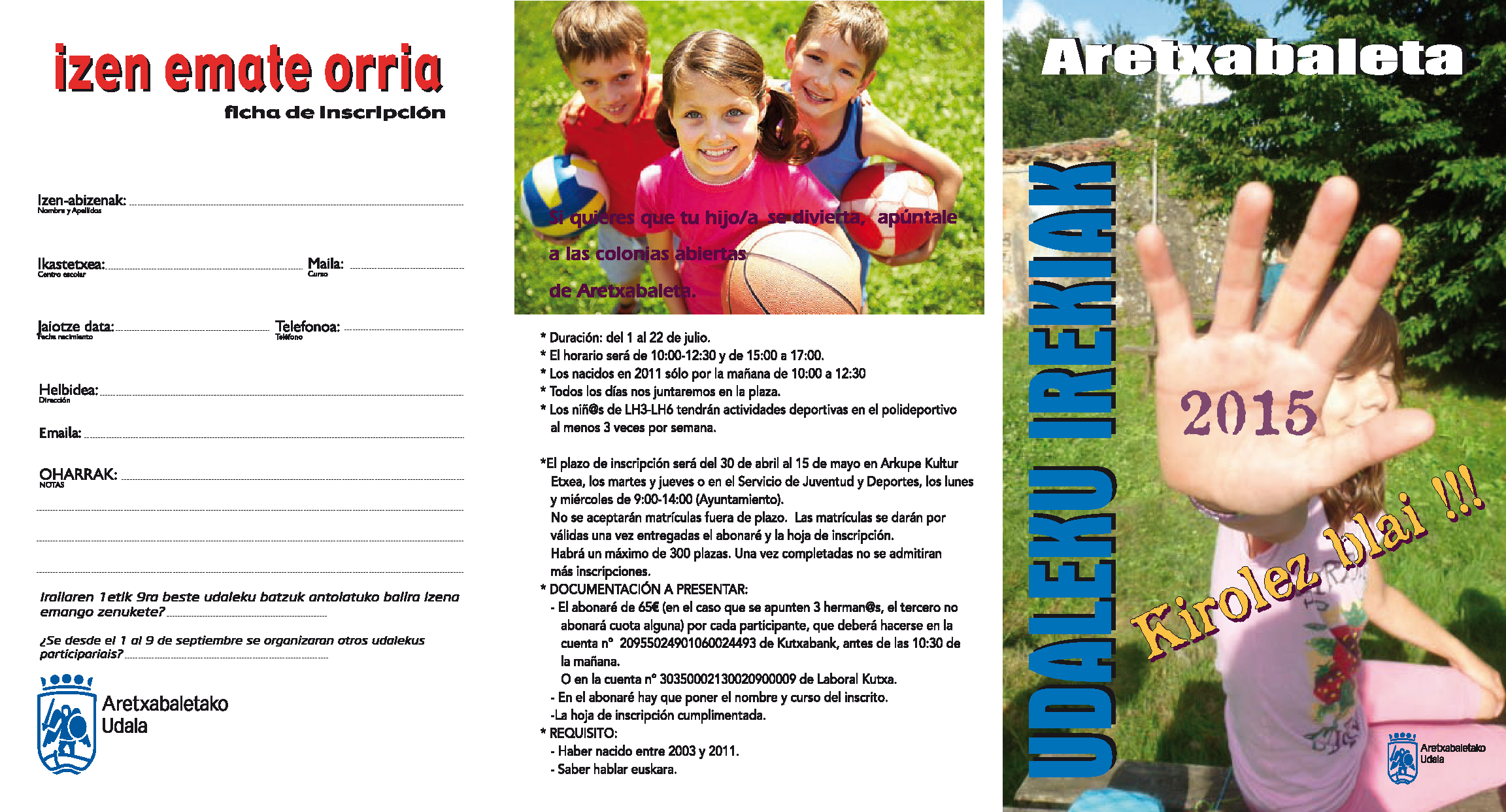Udalekuak 2015 izena ematea zabalik.