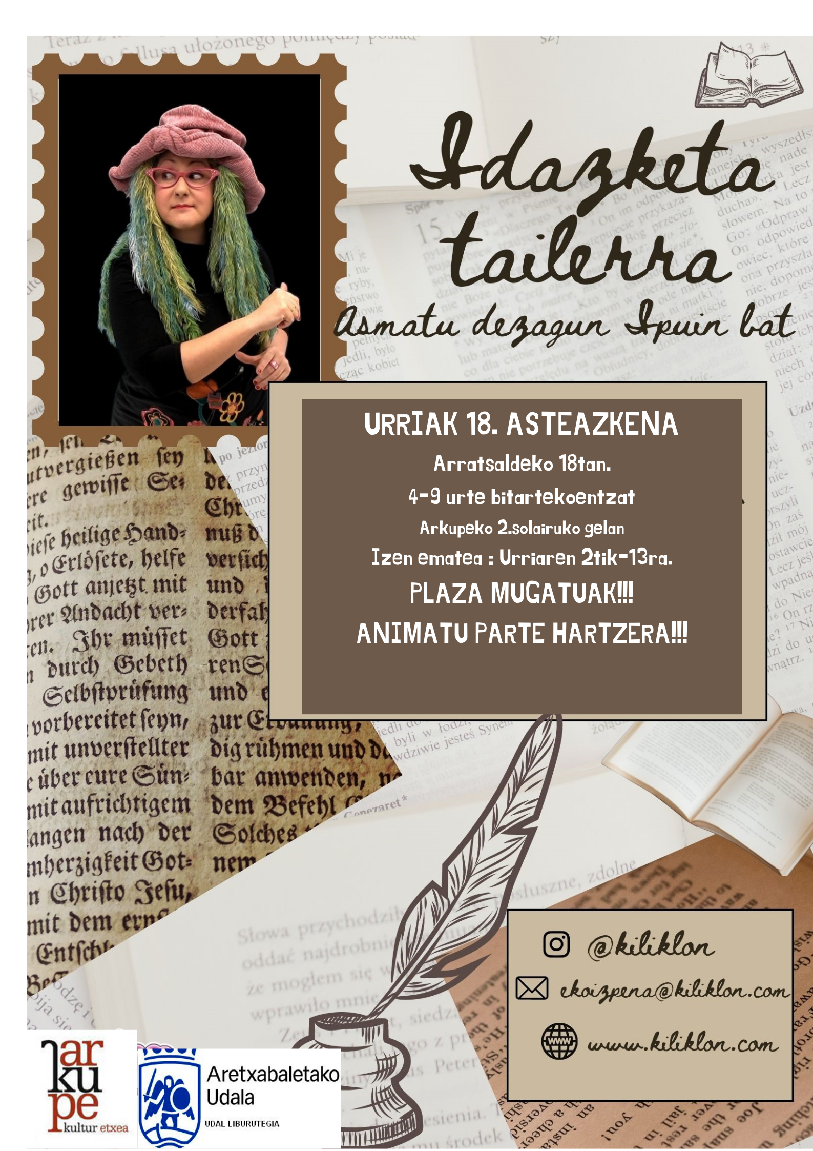- 4-9 urte bitartekoentzako idazketa tailerra.